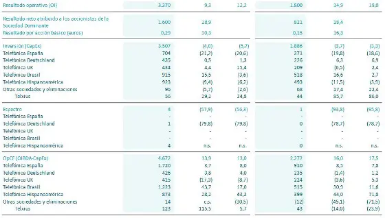 Sus ingresos aumentaron hasta los 26.091 millones de euros a finales de junio, lo que representa un 3,4% más en términos reportados y un 2,3% más en términos orgánicos respecto al primer semestre del ejercicio anterior. Y el beneficio bruto antes de amortizaciones (OIBDA) se situó en los 8.179 millones de euros, un 5,5% más en términos reportados y un 4,3% más en términos orgánicos, mientras que el beneficio operativo (Oi) fue de 3.370 millones de euros, un 9,3% más en términos reportados y un 12,2% más en términos orgánicos