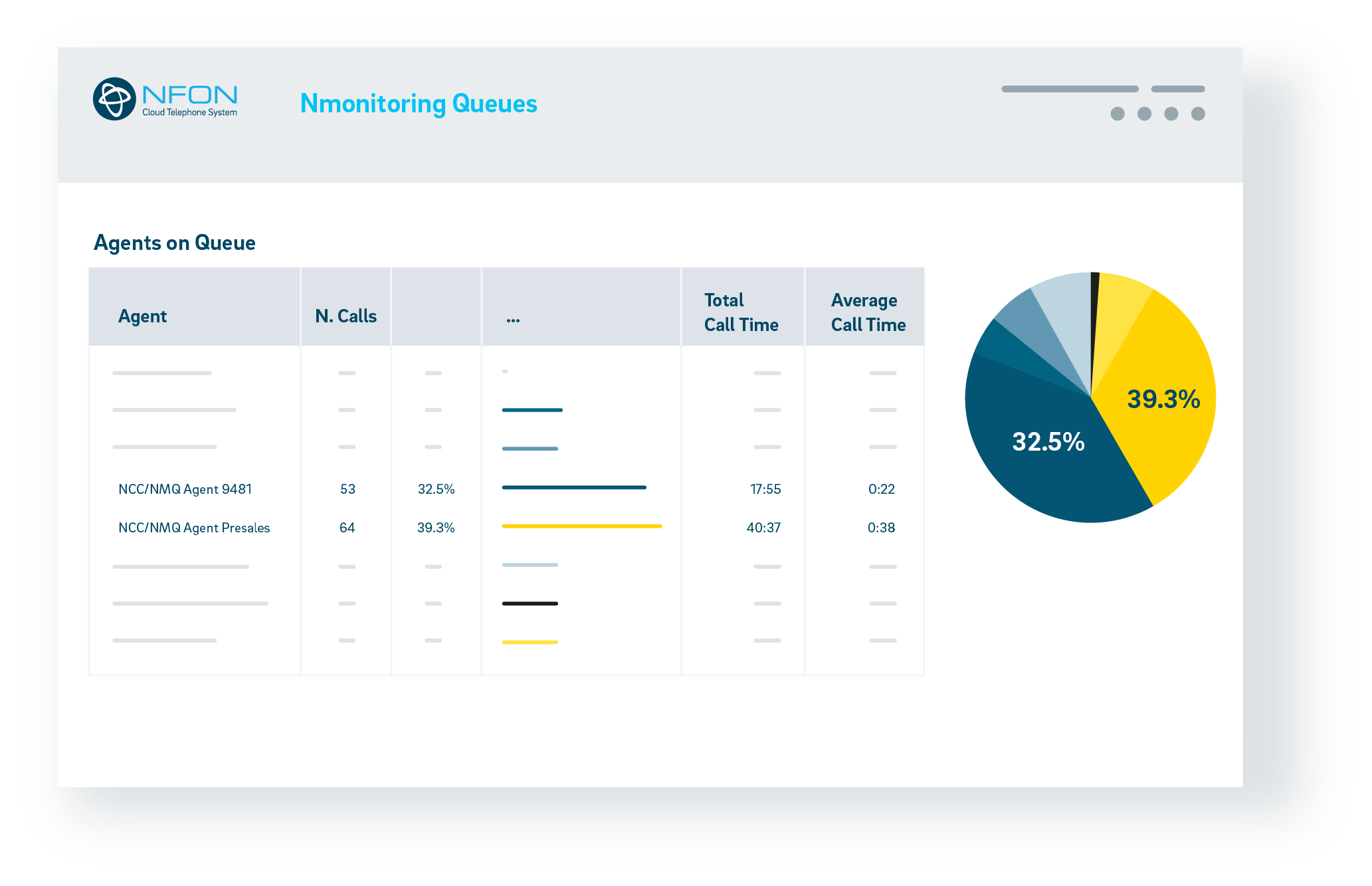Nmonitoring Queues se presenta como una herramienta perfecta para pequeños centros de atención al cliente desde 5 a 100 empleados. Proporciona una forma eficiente y asequible de capacitar a los equipos de soporte, con funciones y vistas específicas para supervisores y agentes, que funciona como un complemento adicional deCloudya, el sistema de centralita en la nube de NFON.