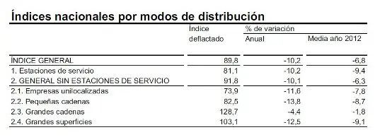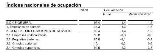 Tampoco se ha creado más empleo en este periodo. Únicamente las grandes cadenas incrementaron el número de ocupados un 0,3% en comparación con noviembre. El resto, disminuyeron las contrataciones. La media del año se ha situado en una caída del 1,2%.