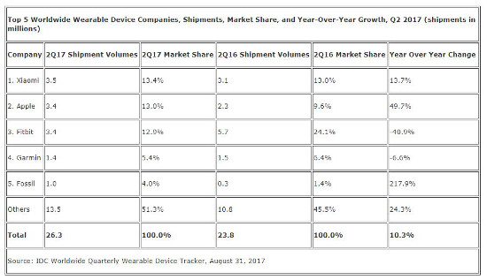 Apple Watch.Mercado mundial de wearables en el segundo trimestre de 2017.