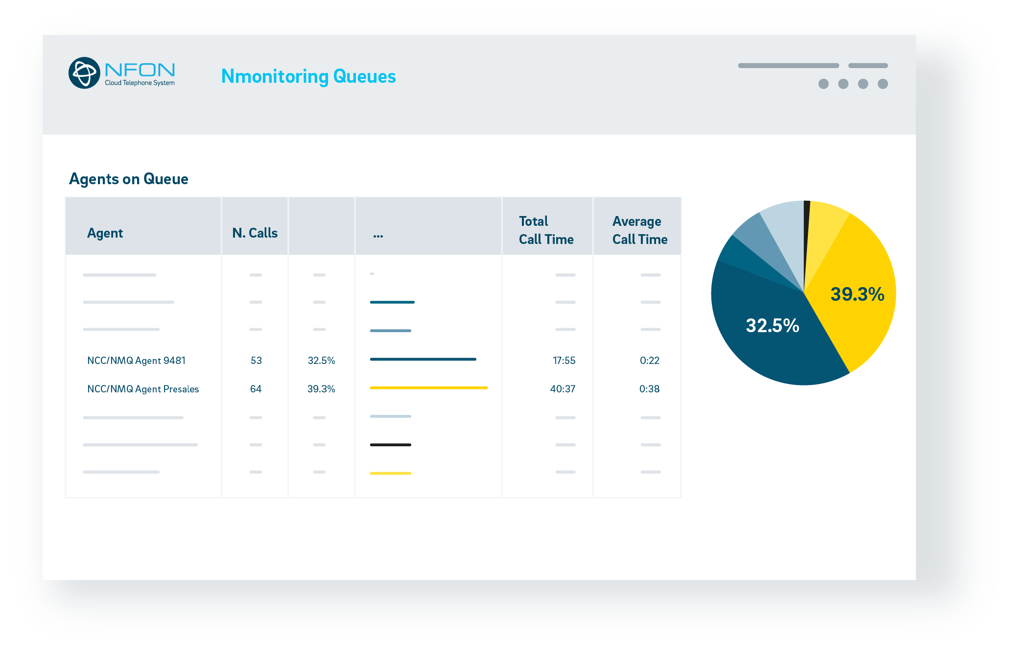 Nmonitoring Queues se presenta como una herramienta perfecta para pequeños centros de atención al cliente desde 5 a 100 empleados. Proporciona una forma eficiente y asequible de capacitar a los equipos de soporte, con funciones y vistas específicas para supervisores y agentes, que funciona como un complemento adicional deCloudya, el sistema de centralita en la nube de NFON.