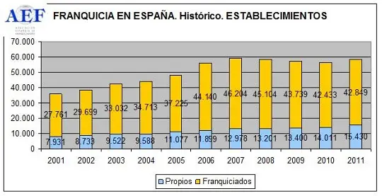 Asociación Española de Franquiciadores (AEF) ha presentado su estudio La franquicia en España 2011. En palabras del presidente de la Asociación, Xavier Vallhonrat, “sorprendentemente todos los datos de este año son positivos, lo que nos lleva a retomar los datos de 2008. Hemos entrado en una recuperación de cifras que parece augurar un futuro más interesante del que creíamos”. Parece, por lo tanto, que este sistema de negocio ha visto la luz al final del túnel de la crisis, retornando a la senda del crecimiento en todas sus variables: en número de cadenas tanto nacionales como extranjeras, en facturación, en número de establecimientos y en número de empleados.