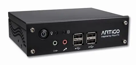 Con unas dimensiones de tan solo 15 x 11 x 4 cm y 520 gramos de peso, bajo la estructura de esta pequeña caja se esconde un ordenador con procesador VIA C7 a 1,2 GHz y placa base Pico-ITX. Sorprende lo rápido que ejecuta tanto acciones como programas. Aunque el sistema de ventilación cumple con su función, hace cierto ruido. No obstante, y al igual que el equipo de Acer, no llega a ser incómodo. Un detalle importante es que el usuario deberá montar esta pequeña CPU por sí mismo, lo que conlleva ser minucioso para hacer encajar cada componente a la perfección. Además, hay que valorar el hecho de que hay que comprar aparte tanto el disco duro (tamaño de 2,5 pulgadas) como la memoria RAM (máximo 1 Gb). De todas maneras, como no exige un desembolso económico elevado, se puede disfrutar de Artigo como un equipo secundario que podría desempeñar a la perfección las tareas de un pequeño servidor doméstico. Admite la instalación tanto de Linux como Windows. El apartado de conexiones es de las más básicas: cuatro USB 2.0, entrada de micrófono, salida de auriculares, conexión Ethernet y salida VGA para el monitor. De todas maneras, en la caja se incluyen conexiones complementarias como un cable PS/2 y otro tipo DVI. Quizá se echa en falta alguna conexión USB más y una unidad para los CD y DVD.