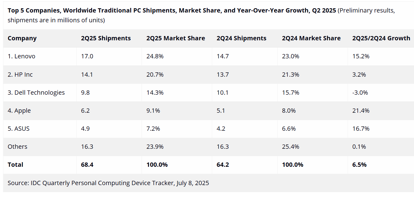En los últimos tiempos, el negocio que mejor le funciona a Dell es el que tiene que ver con los servidores que hacen correr la inteligencia artificial en los centros de datos. Ese bum hizo subir la facturación de la compañía un 19% en el último trimestre fiscal, cerrado el pasado 1 de agosto, hasta totalizar 29.800 millones de dólares. Y compensó la evolución mucho más modesta de otros negocios, como el del PC, que solo creció un 1%, hasta alcanzar los 12.500 millones de dólares. De hecho, en PC de consumo, las ventas de Dell llegaron a caer un 7%, mientras que las de equipos profesionales subieron un 2%.