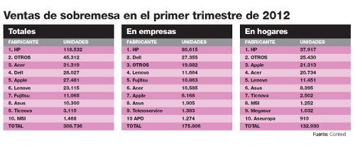 Pero también siguen fieles a este formato los exigentes gamers, los amantes de los videojuegos en alta definición, que solo en una estación de 2.000 euros equipada con el procesador de gama más alta y los gráficos más potentes encuentran respuesta a sus demandas. Además de familias y jugones, se decantan por el sobremesa los estudiantes universitarios, los diseñadores, los fotógrafos o los usuarios que quieren montar vídeos domésticos y requieren sistemas de alto rendimiento y con una elevada capacidad de almacenamiento. En este punto no hay que olvidar el despegue en los últimos tiempos de Apple. Al calor del iPhone, del iPad y de la potente imagen de marca de la manzana, los iMac han calado y la compañía fundada por Steve Jobs ya es, según Context, la segunda marca del ranking español de fabricantes de desktop para particulares.