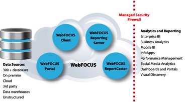 Cloud Hosting Services permite transformar los datos empresariales en información valiosa para el negocio a un coste más que razonable. Por un lado, la solución de integración iWay de Information Builders facilita a las empresas la gestión de la información tanto estructurada como desestructurada, garantizando la integración en tiempo real de sus datos desde numerosas fuentes y en múltiples formatos. Por otro, su plataforma de BI WebFOCUS permite al usuario generar reportes, gráficos y cuadros de mando personalizados, y acceder a la información desde cualquier sistema operativo y dispositivo móvil.