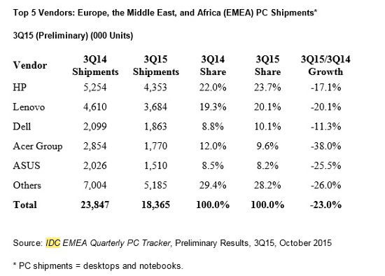 Así, según IDC en Europa occidental las ventas de PC alcanzaron 11,8 millones de equipos, lo que supone que el negocio se contrajo un 18,4%. Según la consultora, la existencia en el canal de muchos portátiles de bajo coste que llegaron bajo el paraguas de la iniciativa Bing, con la que Microsoft quería combatir el empuje de los Chromebooks y de las tabletas con Android, ha llevado a las grandes marcas a ser prudentes a la hora de sacar nuevo producto.