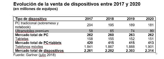 Aunque el mercado PC es muy sensible al precio, Gartner detecta que las compañías están migrando sus equipos a sistemas de gama alta, como portátiles premium ligeros. En este sentido, Gartner prevé que las ventas de portátiles ultraligeros se incrementen un 12% durante este ejercicio.