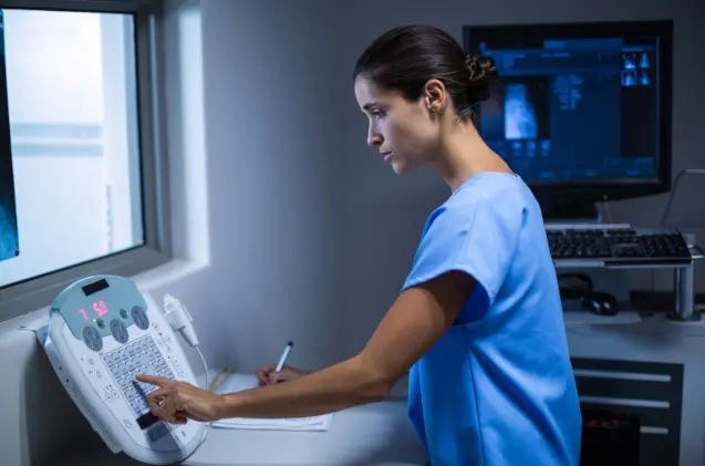 • Sanitaria en el Hospital Sant Rafael de Barcelona.