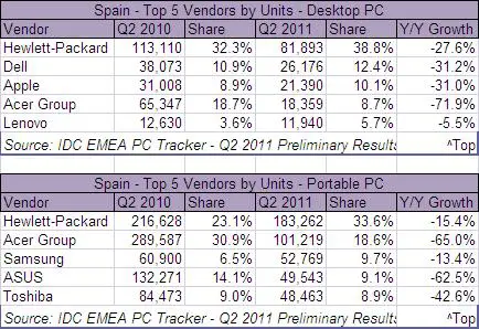 Hace unos días publicábamos la noticia de que en EMEA, las ventas de PC habían caído en este segundo trimestre de año un 8,9% según IDC, y un 4,8% de acuerdo con Gartner. Bien, España no podía ser menos y tras conocer los datos preliminares de IDC sobre la situación de este mercado en nuestro país, podemos afirmar que España es uno de los países europeos donde mayores descensos está experimentando.