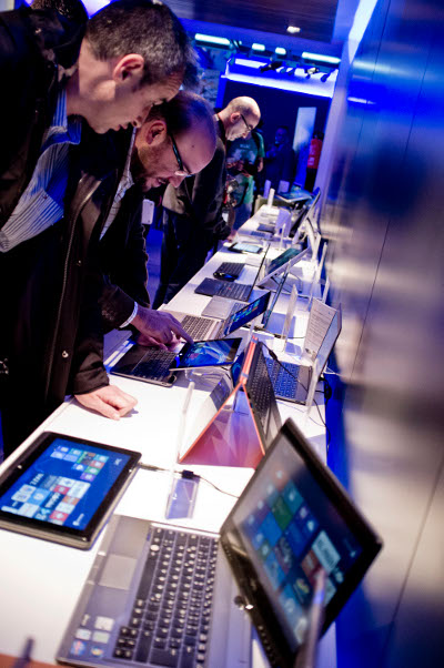 Con una presentación digna de los mejores tiempos de la industria, Microsoft anunció ayer la disponibilidad de Windows 8, la revolucionaria plataforma operativa con la que quiere plantar cara a Apple en el mundo del consumo. Arropados por una veintena de fabricantes de hardware –entre los que se encontraba Acer, HP, Fujitsu y Samsung- otros tantos desarrolladores y la práctica totalidad de los medios de comunicación nacionales, la cúpula directiva de Microsoft, con María Garaña a la cabeza, desgranaron las excelencias del nuevo Windows entre los que destaca la apariencia amigable del interfaz táctil, la disponibilidad inmediata entre 1.000 dispositivos de la industria y el alto número de aplicaciones preparadas para ejecutarse sobre el nuevo entorno.