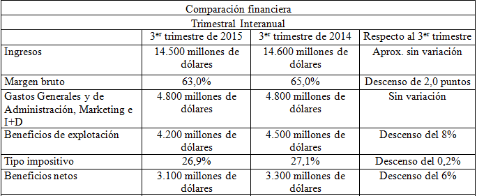 Intel Corporation ha presentado sus resultados del tercer trimestre de 2015, en los que la compañía ha registrado unos ingresos de 14.500 millones de dólares, unos beneficios de explotación de 4.200 millones, unos beneficios netos de 3.100 millones y unas ganancias por acción de 64 centavos de dólar.