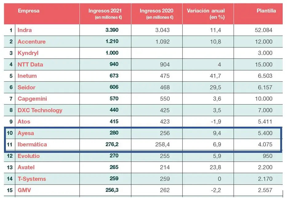 Es la compra del verano en el sector tecnológico español. La consultora Ayesa ha adquirido la histórica Ibermática, y juntas tendrán una facturación en torno a los 556 millones de euros y una plantilla de unos 11.000 empleados, lo que convierte a la nueva entidad en la octava consultora TI del mercado nacional por volumen de negocio si atendemos a los datos del Ranking del Canal TIC en España de CHANNEL PARTNER, por detrás de Capgemini (ver cuadro superior).