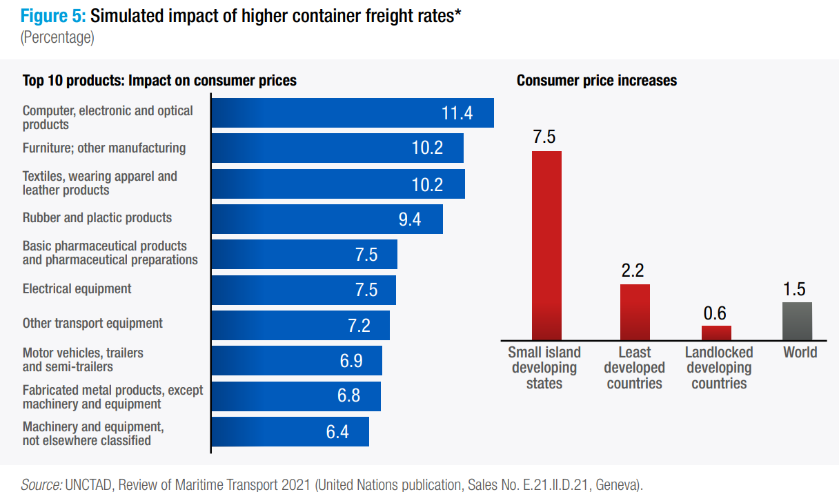 El consejo para el comercio y desarrollo de las Naciones Unidas (UNCTAD) ha confirmado una más que probable subida del 11% en los precios al consumidor de los productos informáticos, electrónicos y ópticos, a consecuencia del aumento de las tarifas de los fletes tras el estallido de la guerra de Ucrania.