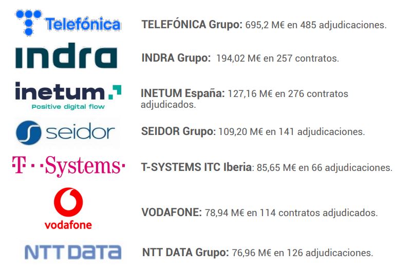 Telefónica, Indra e Inetum, los mayores adjudicatarios