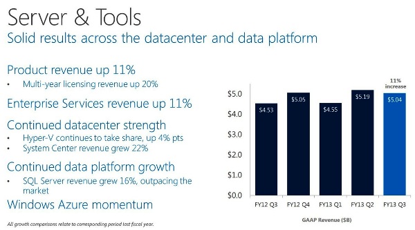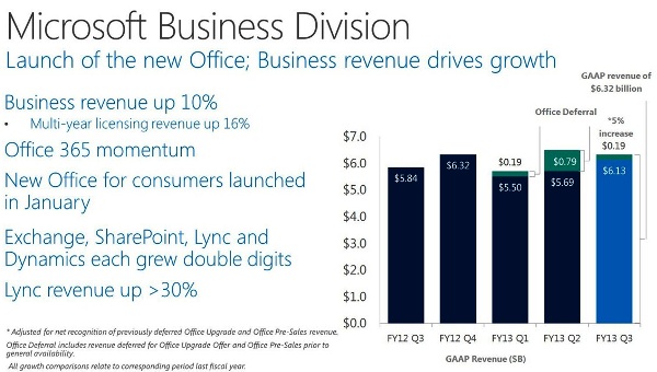 Las cuentas del tercer trimestre fiscal de Microsoft han evidenciado que es una compañía de lo más fuerte y diversificada, como lo demuestran las ventas de Office y del negocio servidor; aunque no han sido suficientes para calmar las dudas que giran en torno a Windows 8, y eso que la división de Windows ha incrementado sus ingresos un 23% aportando 5.700 millones de dólares.