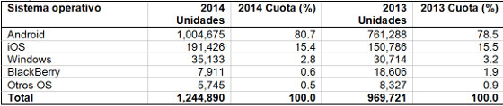 Estos buenos resultados de la recta final del año contribuyeron a que el ejercicio se saldará con más de 1.000 millones de teléfonos inteligentes vendidos a escala global (1.200, concretamente), un 28,4% más si comparamos el dato con 2013. Además, tal y como recoge Gartner en su informe, los smartphones representaron dos tercios de los móviles vendidos en todo el planeta.