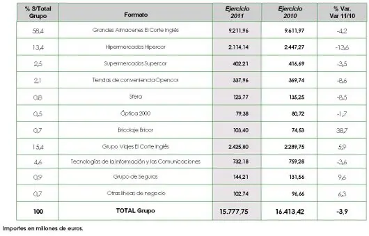Como recoge el informe de gestión y las cuentas anuales, aprobadas por la Junta General de Accionistas del grupo, El Corte Inglés ha cerrado su ejercicio fiscal de 2011, -finalizado el 29 de febrero de este año-, con una facturación total de 15.778 millones de euros, un 3,9% menos que el año anterior, afectado por la situación de crisis que vive nuestro país, que tiene un gran impacto en el sector de la distribución.