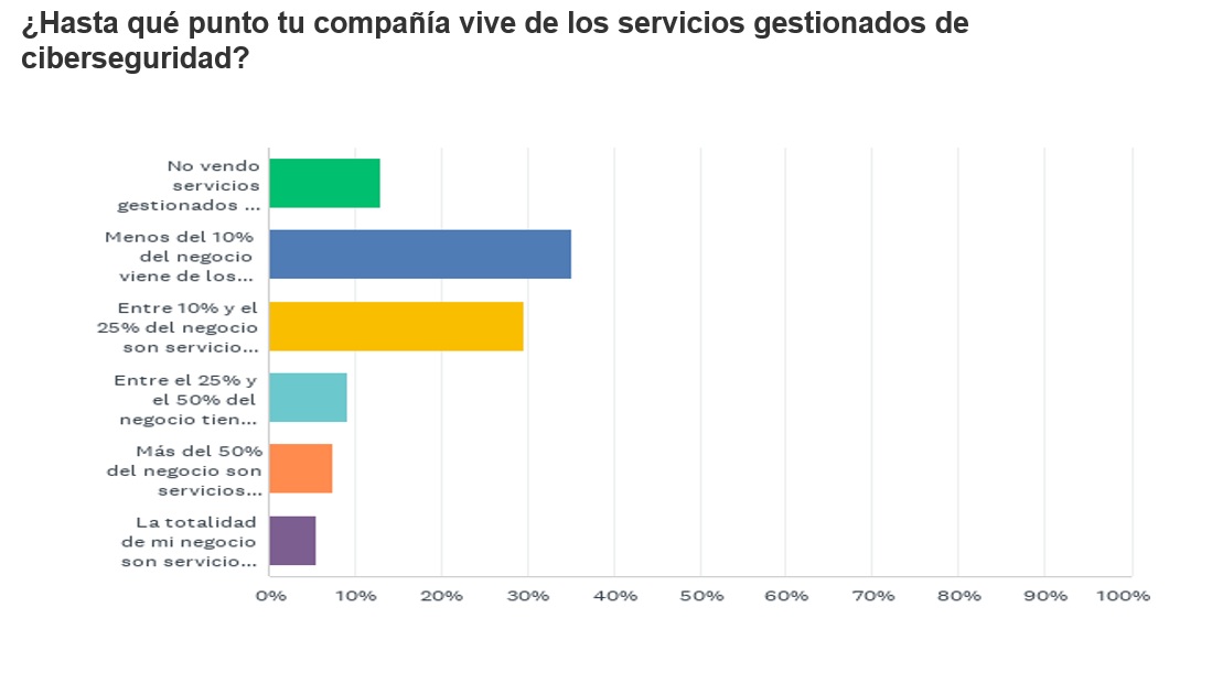 Sin embargo, esa aproximación teórica al modelo MSP no se traduce a día de hoy en un negocio real. Casi un 13% no vende este tipo de servicios “en absoluto”, y para un 35% representa menos de un 10% de la facturación. Por el contrario, son una minoría los partners que viven enteramente de este tipo de provisión de servicios: un 5,5%. Mientras que para otro 7,4% supone más del 50% de sus ventas. Curiosamente, un 42,5% de los partners que responden a la encuesta aseguran tener un SOC (centro de operaciones de seguridad) operativo. Y casi otro 26% está planificando tener uno.