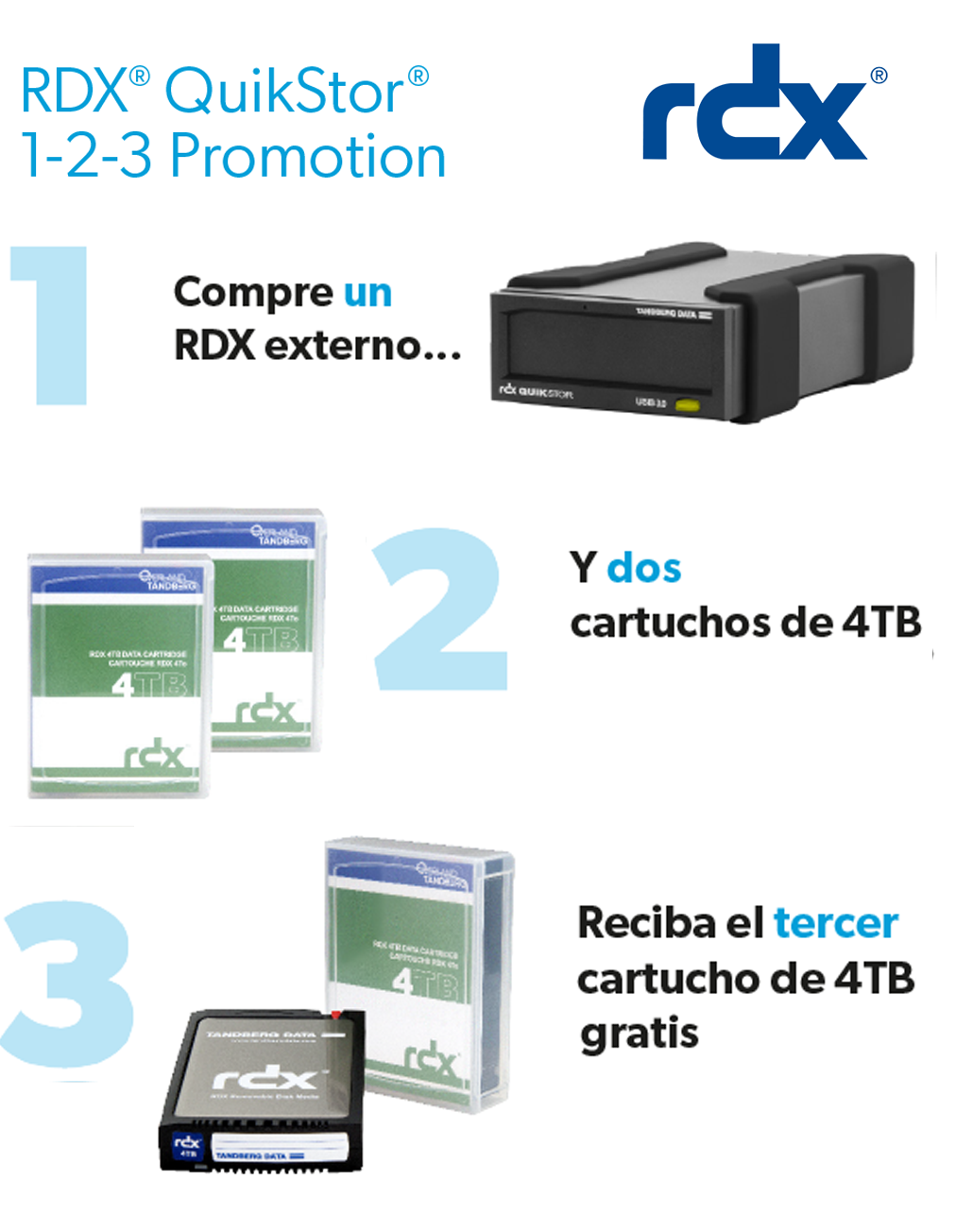 Hasta el 31 de Marzo, aproveche la promoción RDX 1-2-3 para seguir una estrategia de backup 3-2-1: si compra un dispositivo RDX QuikStor externo + dos cartuchos de 4TB, tiene un tercer cartucho de 4TB gratis*. Contacte con el mayorista oficial Dakel Informática a dakelinfo@dakel.com o bien al T. 935 045 300.