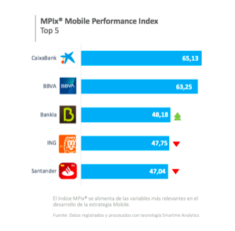 Es importante señalar que el índice muestra la gran recuperación de Bankia, que vuelve a la 3ª posición del ranking,escalando dos lugares estratégicos en el mercado y superando a ING, que tradicionalmente había sido uno de los líderes en la digitalización del sector financiero y que en la actualidad se queda en el cuarto puesto (47,75), y a Santander, que queda en el quinto puesto (47,04). En el engagement, otras de las variables que conforman el MPIx, también se producen aumentos y disminuciones.