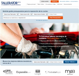 Tallerator.es es un marketplace web y móvil para conseguir reparaciones a un precio económico. Se trata de la primera plataforma para comparar de presupuestos de talleres mecánicos donde el usuario puede conseguir un gran ahorro en las reparaciones y mantenimientos de su coche. Pretende ser la referencia en Internet de la mecánica con un consultorio mecánico para todos y una base de datos de averías donde el usuario puede saber cuándo le fallará el coche, en qué kilómetro y qué pieza fallará. Además, está preparando un sistema tecnológico para el vehículo que muy pronto sacará a la luz.